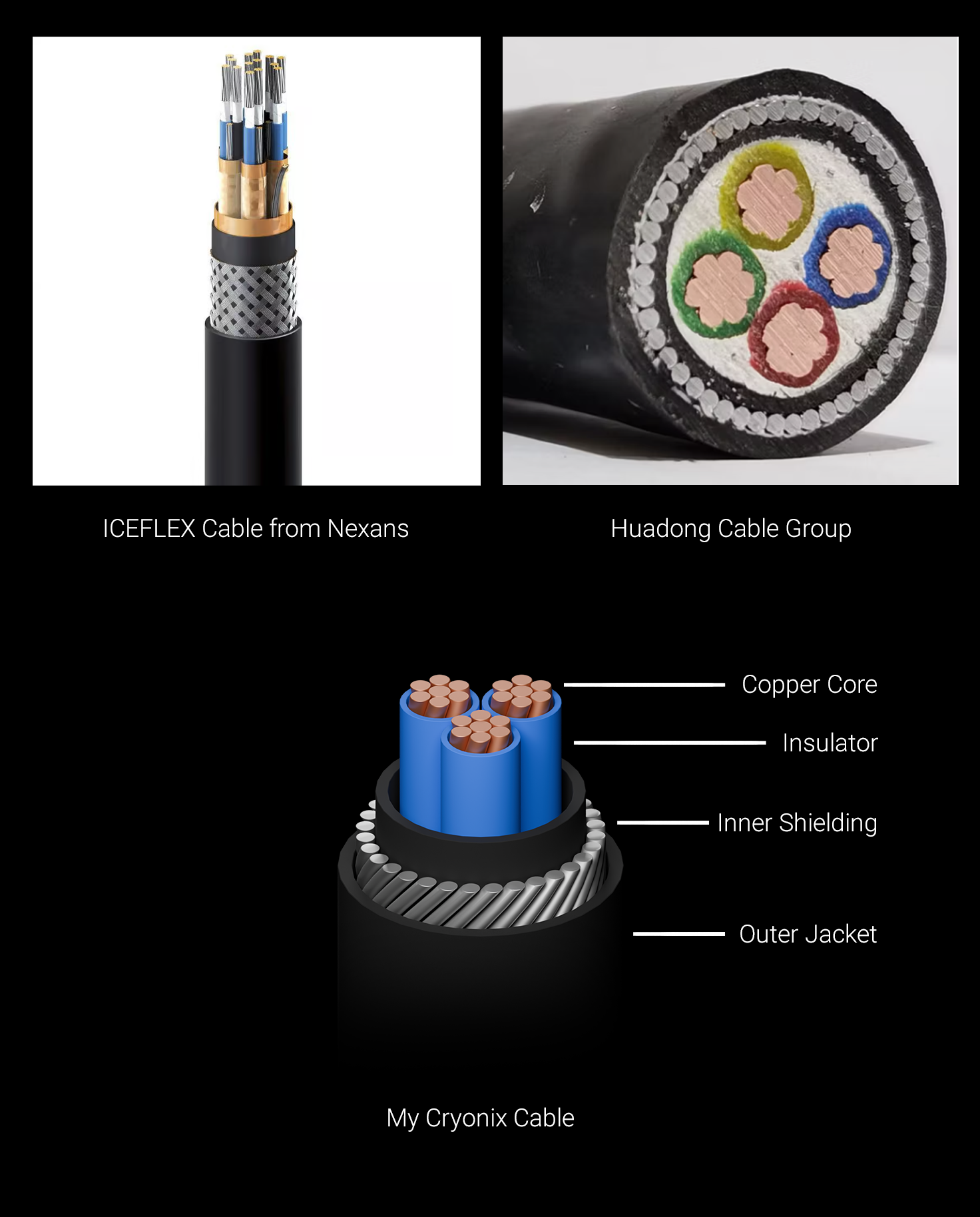 The Cryonix concept focuses on a small, purposeful product line instead of a broad catalogue. A single hero cable anchors the experience, with its internal layers revealed progressively through scroll interaction. Framing the page as a product story rather than a traditional product listing allows the website to clearly explain how industrial cables are constructed and why their internal structure matters.